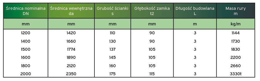 Dzięki dużej nośnosci rur możliwe jest utrzymanie stałej grubości ścianek dla poszczególnych średnic, a usystematyzowanie średnic pozwala na łatwiejsze magazynowanie i upraszcza system transportu.